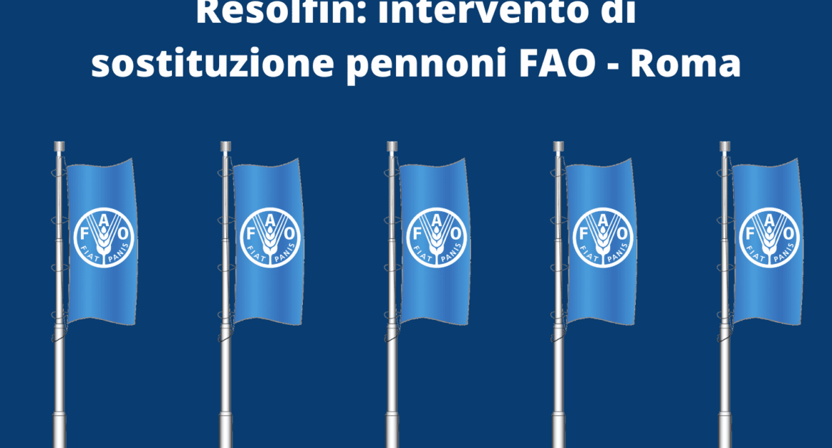 01/09//2021 Tra il 2021 e il 2022 Resolfin è stata protagonista di un importante quanto prestigioso intervento: la sostituzione dei pennoni esistenti presso la sede di Roma della FAO. I pennoni esistenti sono stati sostituiti con dei nuovissimi pali argentati: 197 pennoni, uno per ogni stato membro dell’unione. Contestualmente all’installazione, abbiamo provveduto al corretto smaltimento […]
